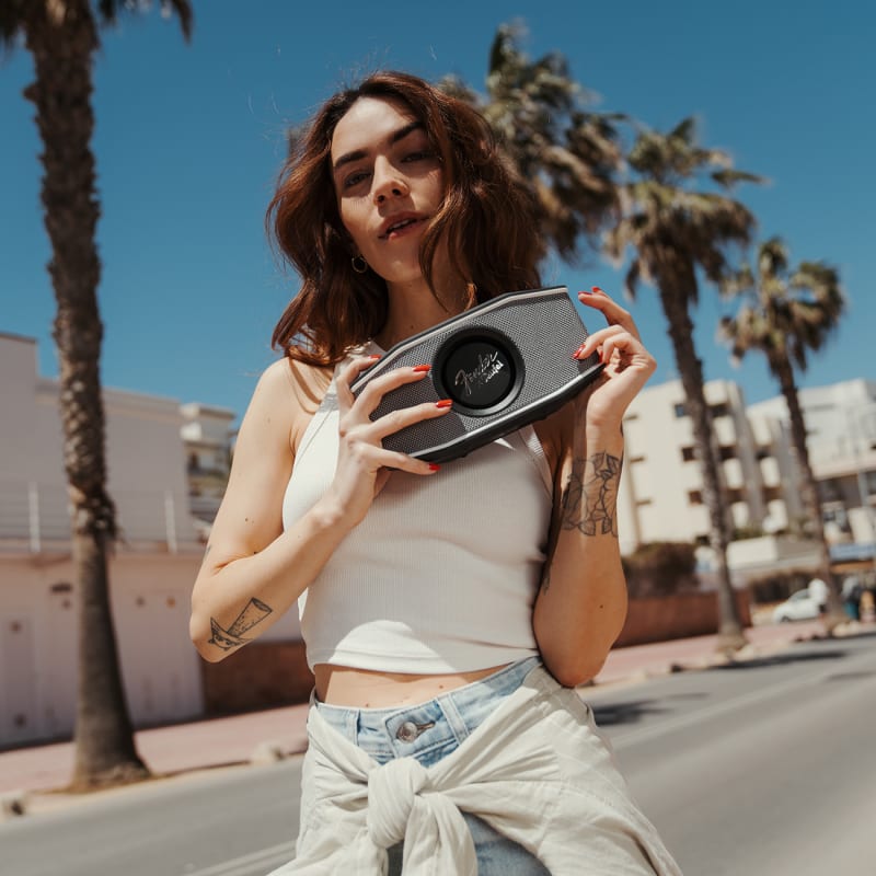 Der Fender x Teufel ROCKSTER GO 2 kombiniert auf clevere Art und Weise edlen, druckvollen Sound entwickelt in Berlin mit einem extrem robusten Gehäuse. Starte deinen Sound am Strand und in den Bergen, höre ihn weiter bei dir im Wohnzimmer.