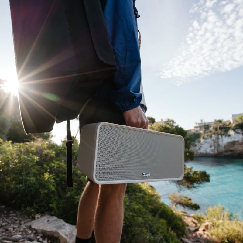 Der BOOMSTER setzt wieder Maßstäbe. Er ist der tragbare Outdoor-Speaker mit integriertem Akku, stellt aber selbst kompakte Stereoanlagen im Wohnzimmer in den Schatten.