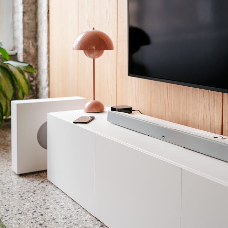 11 von 10 Punkten für guten Sound. Spendiere deinen Lieblingsfilmen, Serien und Games das, was sie verdienen: erdigen Bass plus prickelnde Höhen. Die CINEBAR 11 bietet dir zudem einen Subwoofer, der unters Sofa passt sowie optionalen Surround Sound. Und dein Fernseher wird Ohren machen.