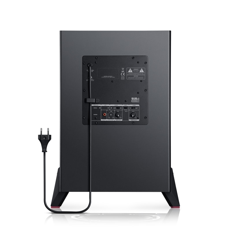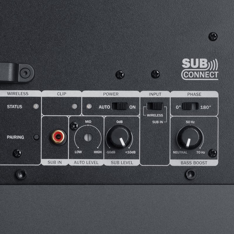 - Mächtiger Subwoofer, wahlweise als Front- oder Downfire-Subwoofer verwendbar, optional kabellos ansteuerbar